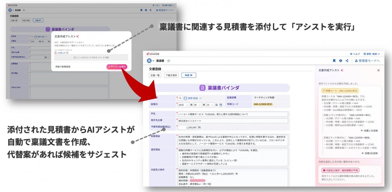 SmartDBでは、市民開発者がAIプロンプトの作成、利用するデータソースのマッピングを行い、継続的に業務改善できる仕組みを提供する。特にプロンプト設計を現場主導で行えるため、実務に根ざしたAI活用を可能にする点が強みだという。