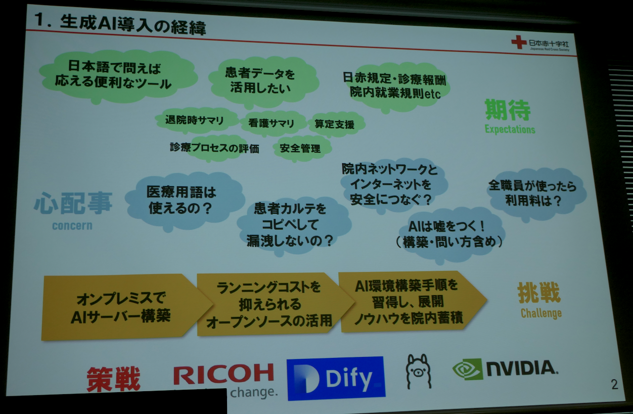 これらの課題を踏まえて、「オンプレミスでAIサーバー構築」「ランニングコストを抑えられるオープンソースの活用」「AI環境構築手順を職員が習得/展開し、ノウハウを院内に蓄積」という要求がまとまり、ベンダーに打診したところリコーが受注、2024年7月からプロジェクトがスタートした。