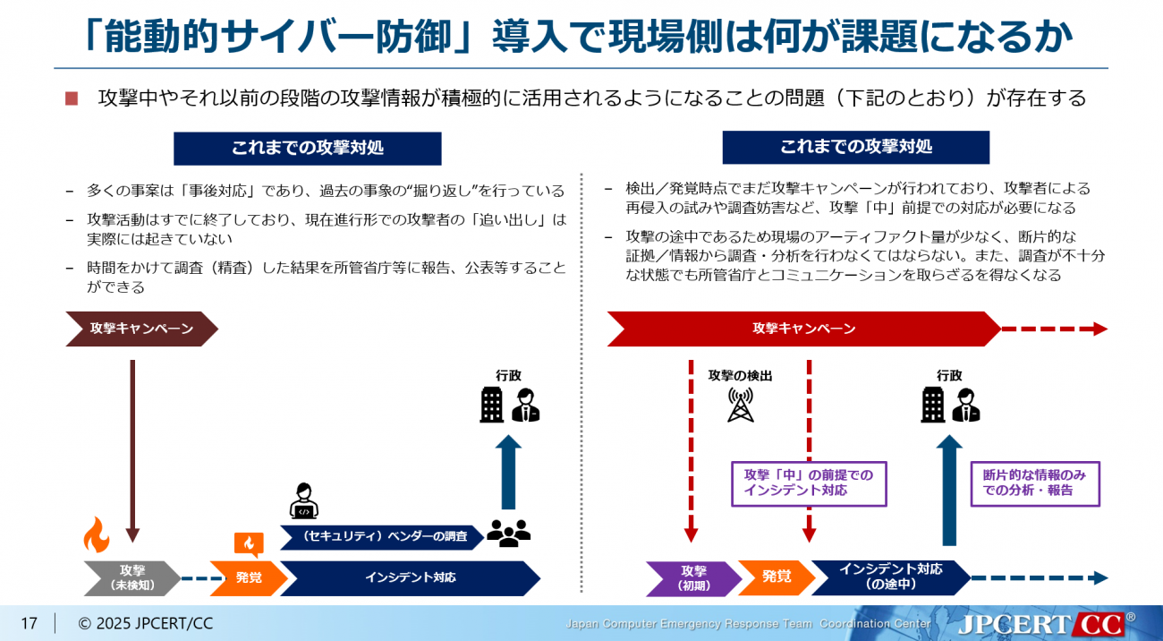 能動的サイバー防御の進展により、攻撃キャンペーンを初期段階で検出する機会が増えることが期待される。しかし、そこにはジレンマも存在するという。