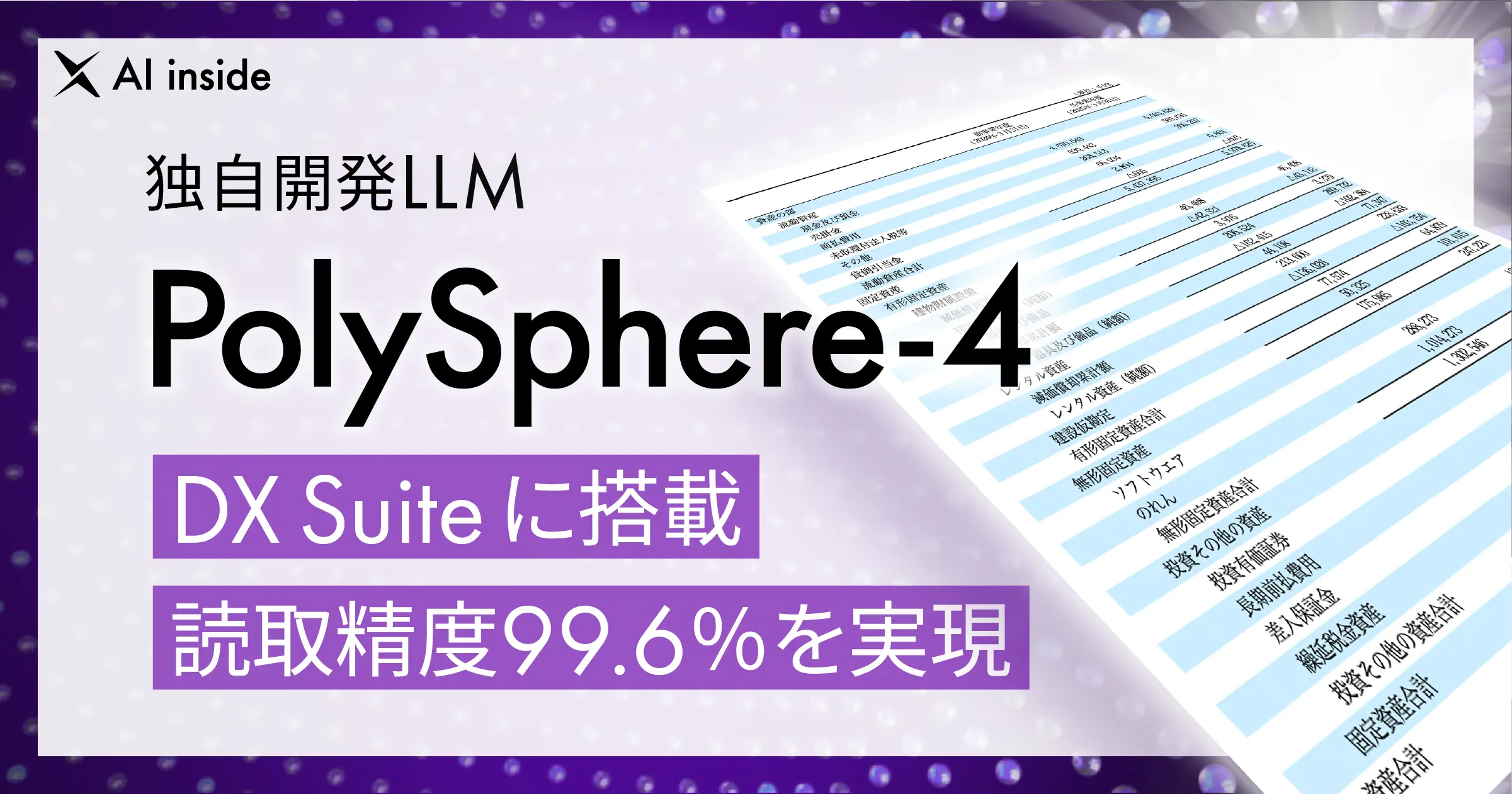 AI insideは、汎用能力を強化した独自開発の大規模言語モデル(LLM)「PolySphere-4」を、データ入力業務を自動化するAIエージェント「DX Suite」に搭載した。