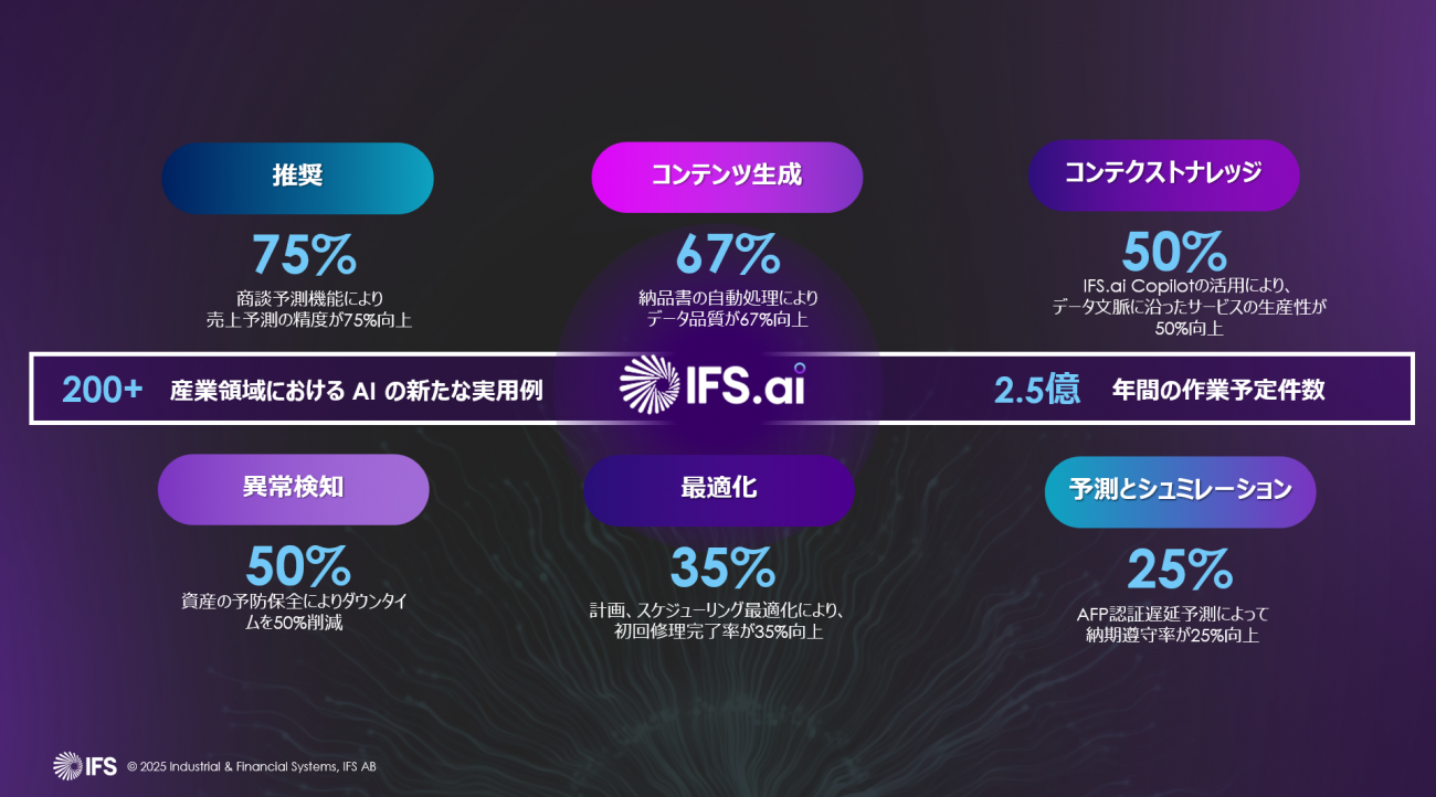 こうして進化を続けるIFS.aiは様々な産業の現場で活用され、「決断」シーンの変革を実現している。その数は既に200以上のユースケース、作業件数にして年間2.5億。竹中氏は、「従業員と一緒に伴走して現場体験を変革するという設計思想が、IFSが選ばれるポイントになっている」と述べた。