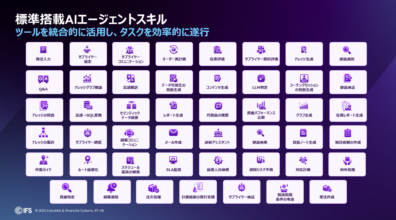 これらを提供するIFSジャパン自身もまた、自社内での実践例を示している。同社は2023年より、エージェント型AIを日常の営業活動に導入した。その結果、従業員数は微増にとどまる一方で、売上は計画通りに推移し事業拡大を達成している。