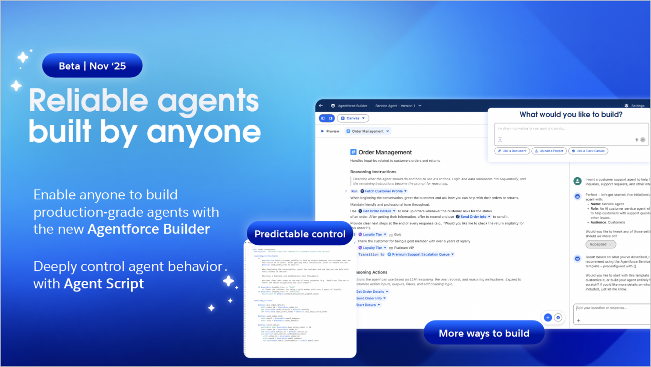 既に営業やカスタマーサポートのように、ビジネス部門に所属する人たちがAIエージェントの構築に意欲的だ。そうしたユーザーは外部委託せずとも、誰もが容易に制御できるAIエージェントを構築したいと考えている。こうした状況を踏まえ、Agentforce Builderでは、プログラミング知識の有無を問わず、誰もがAIエージェントを構築でき、より正確に動作するための“制御”を加えられることを目指した。それを可能にした技術がミッションクリティカルなユースケースへの適用を想定して独自開発された、新しいスクリプト言語「Agent Script」だ。