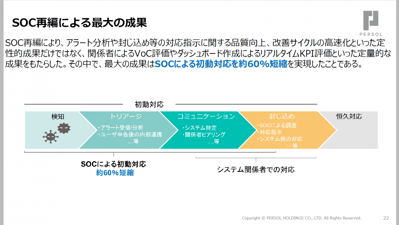 SOC再編の効果も、初動対応60%短縮といった数値で表れている
