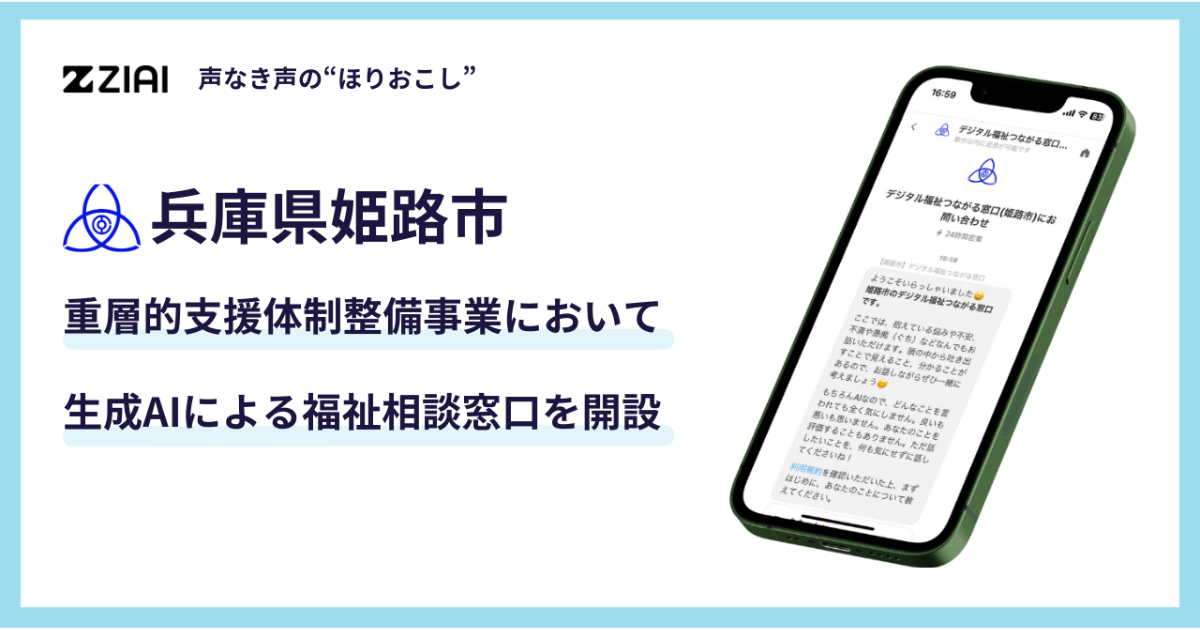 2025年12月5日、ZIAIは、兵庫県姫路市と連携し、重層的支援体制整備事業の一環として生成AI技術を活用した「福祉つながる相談窓口」を12月4日から本格運用したと発表した。
