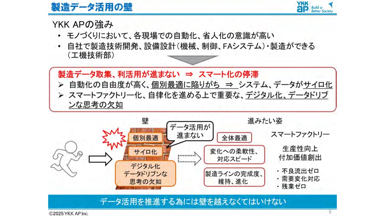 現場の改善意識は高い。しかしそれは「機械化」や「自動化」に向いており、データで全体最適を図る視点が不足していた。澤田氏はこれを「データドリブンな思考の欠如」と表現する。