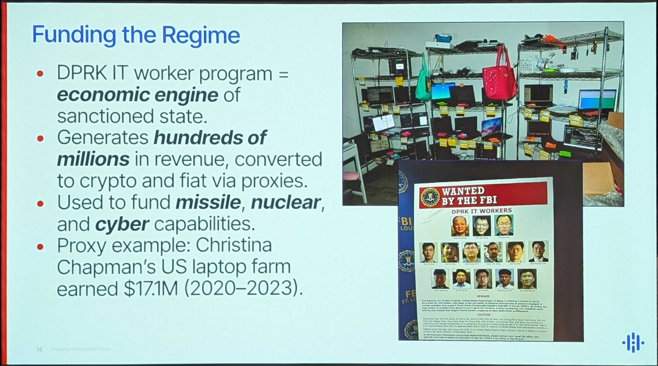 講演では、Christina Lee Chapman(クリスティーナ・リー・チャップマン)という女性の事例が紹介された。彼女は自宅でラップトップファームを運営し、3年間で約1700万ドルの収益を北朝鮮側にもたらしていた。18人以上の個人情報を使い分け、企業からの給与を受け取るための銀行口座も管理していたという。