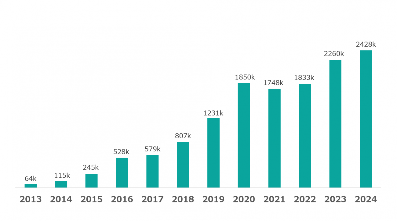 図1に示す通り、インターネット全体を観測してみると、悪意あるスキャンや攻撃パケットが常に飛び交っており、攻撃パケット数は年々増加しています。つまり、インターネットにつないだ瞬間からサイバー攻撃の対象になることが分かります。