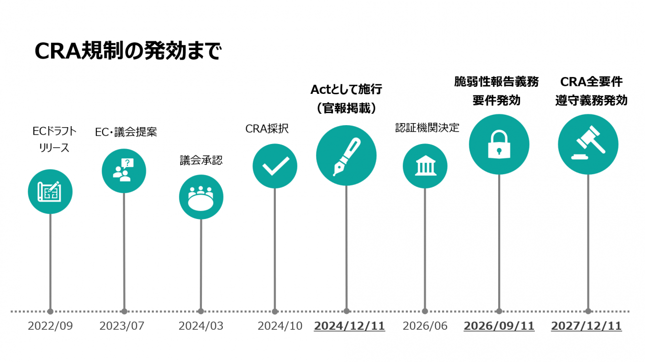CRAは2024年に成立し、今後は数年かけて段階的に適用されていきます。現時点で重要なマイルストーンとなるのは、