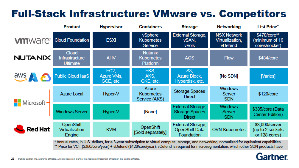 VMwareと代表的な代替ソリューション5つ(Nutanix、パブリッククラウド、Microsoft Azure Local、Windows Server/Hyper-V、Red Hat OpenShift Virtulization)