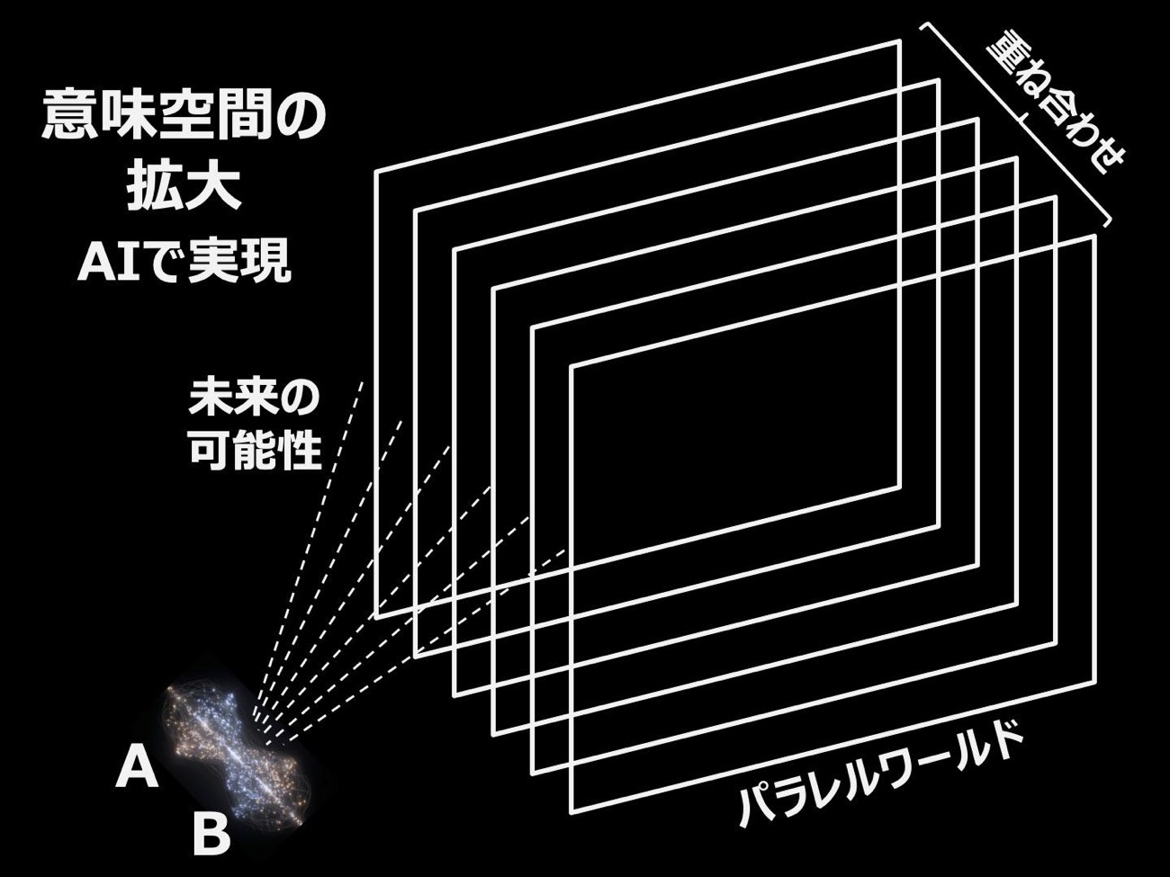 矢野氏はここに、生成AIの限界を突破するヒントを見出した。現在の生成AIは決定論的な構造で動いている。次の単語の確率を計算し続ける仕組みである以上、そこから逸脱した創造性は生まれにくい。一方、量子論には「順序性」という原理がある。AのあとにBが起きるのと、BのあとにAが起きるのとでは、その後の展開がまったく変わる。会議でも同じことが言えて、財務担当者が先に発言するのか、人事が先なのかで議論の流れは大きく変わる。異質なものの掛け合わせが、新しい意味空間を生み出すのだ。