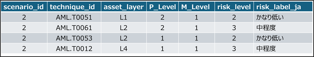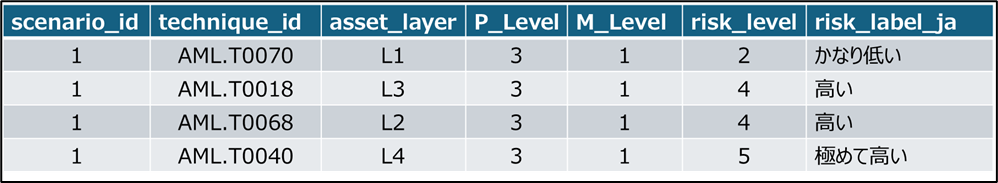 本来、MITRE ATLASは、AIシステムに対する攻撃手法や戦術(Tactics)を体系的に整理した知識ベースであり、攻撃の網羅的カタログ、脅威インテリジェンス共有の基盤、および防御設計を支援するフレームワークとして位置づけられている。そこには各Techniqueの成熟度や関連Mitigationが記載されているが、それらは発生確率を数値化するための公式パラメータではない。