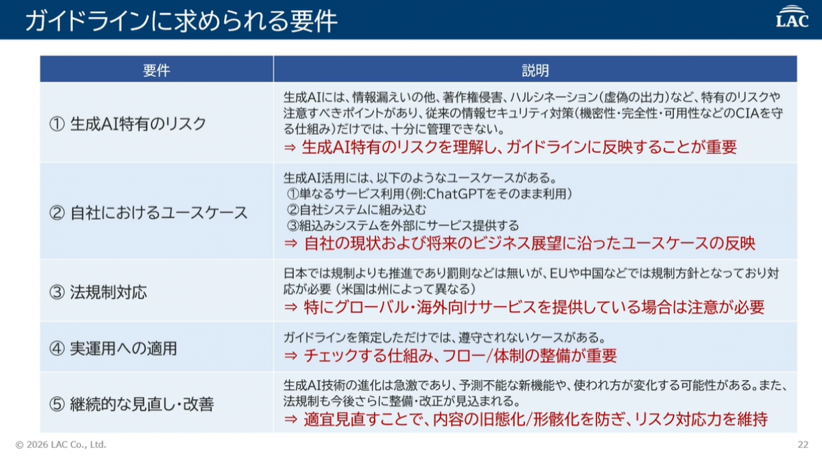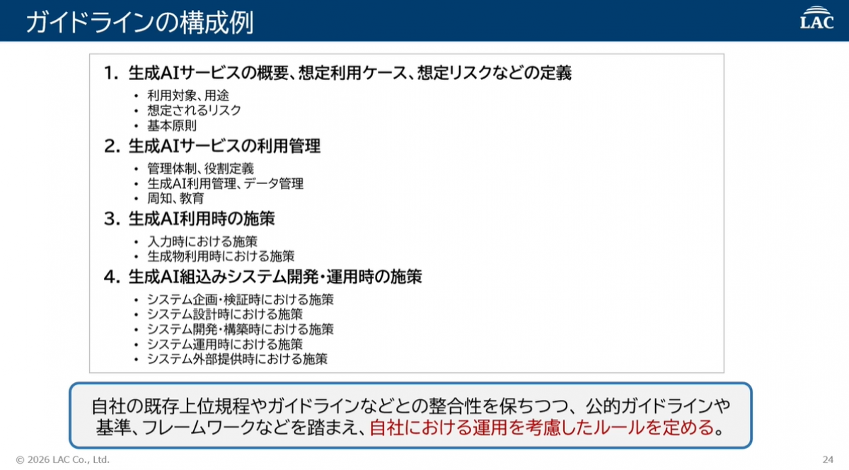 - 対策を急げ!ラックが示す、「現場で本当に運用可能」かつ実効性ある生成AIガイドライン策定の...
