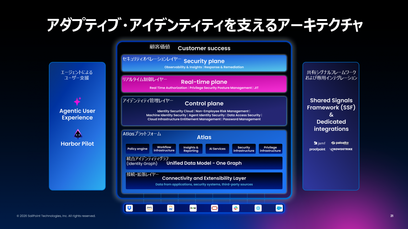 「Atlas」を基盤にすることで、Identity Graphの技術を中心にリアルタイム制御、セキュリティオペレーションを実現し、 柔軟な外部システムとの連携を可能にしているとのことだ。