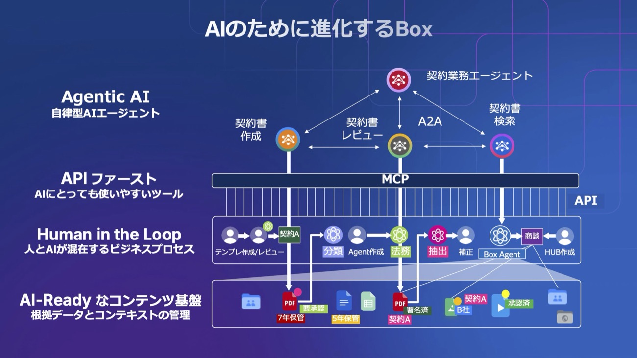 今回発表されたBox Agentは、このICM基盤の上に乗るAIエージェント機能の中核にあたる。