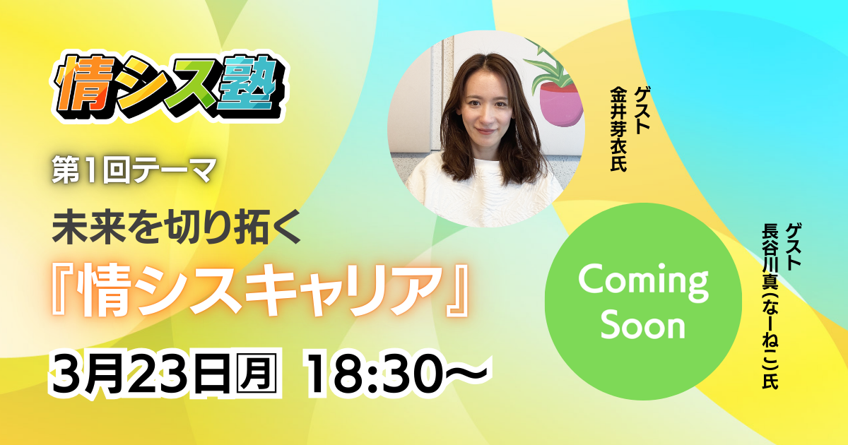 EnterpriseZine編集部は、若手の情シスを対象としたコミュニティ型勉強会「情シス塾」を開校します。2026年3月23日(月)に翔泳社セミナールームにて開催する第1回のテーマは、「未来を切り拓く『情シスキャリア』の描き方」。ゲストに、数多くのキャリア相談実績をもつポジウィル 代表取締役 金井芽衣氏と、「情シスSlack」生みの親のひとりである“なーねこ”こと長谷川真氏が登壇します。