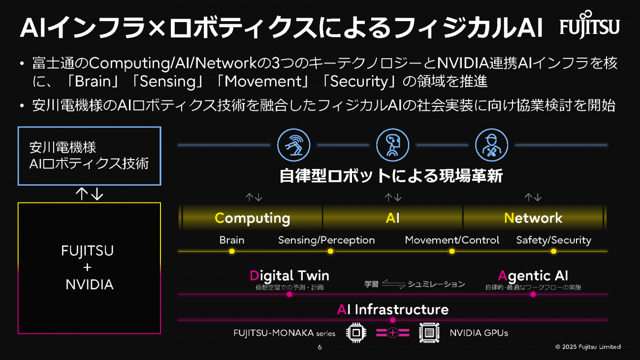 このフルスタックのAIインフラストラクチャーを、特定の産業分野から社会実装へと展開する。協業の具体的なユースケースとして、まずはロボティクスの分野で「フィジカルAI」などの社会実装を目指すことが発表された。マハジャンCTOは、この分野で安川電機との連携を例に挙げ、産業ロボットからヘルスケア、金融といった多岐にわたる分野でソリューション提供を拡大していく可能性に言及した。また、産業横断でのイノベーションを実現するために、両社共同でのパートナープログラム提供も検討されており、エコシステム構築を通じてAIの活用を拡大支援する。