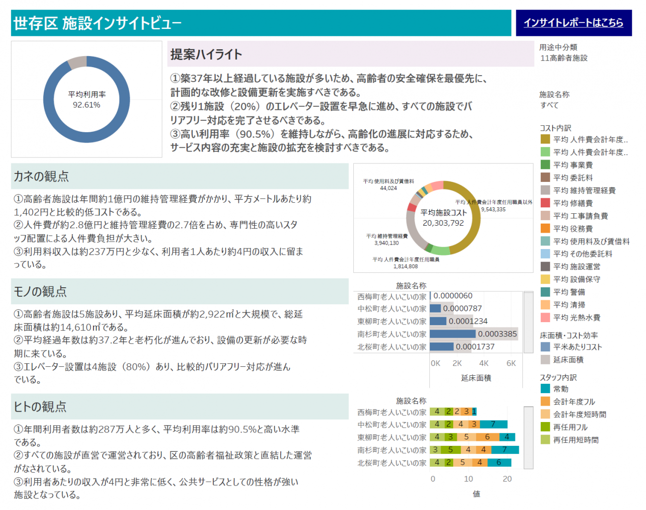 高齢者施設に関する施設評価のインサイトレポート出力例(クリックすると拡大します)