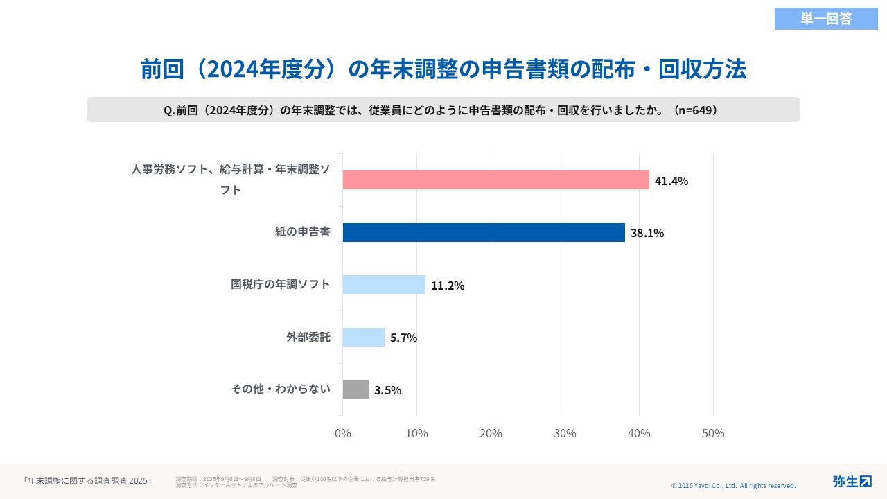 11月6日、弥生は、令和7年度「年末調整」に関する意識や実務上の課題、法改正への対応状況、業務負担などに関する意識調査の結果を発表した。