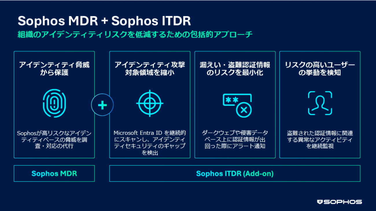 こうした脅威に対抗するための新たなソリューションとして同社が発表したのが「Sophos ITDR」だ。パテル氏は「アイデンティティ(ID)こそが新たな境界防御線である」と定義し、従来のネットワーク境界防御だけでは防ぎきれないIDベースの攻撃への対策が急務であると説いた。