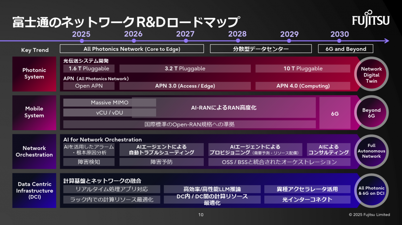 富士通が描くネットワークのR&Dロードマップ(クリックすると拡大します)