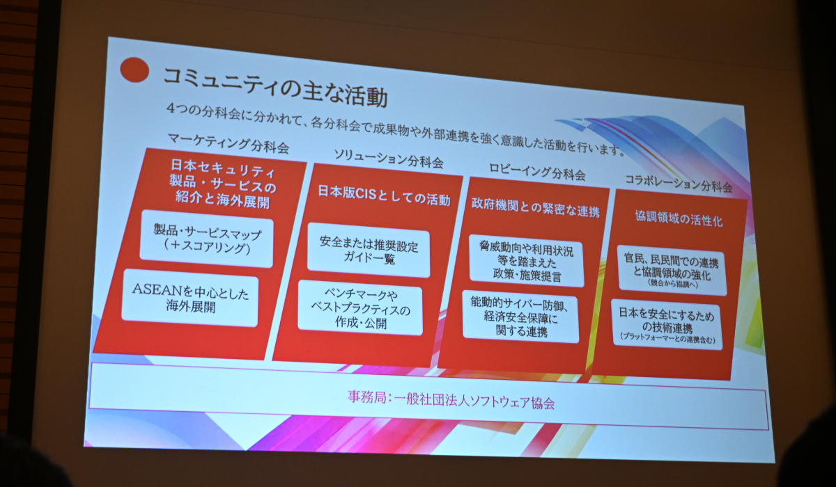 同コミュニティでは、日本のセキュリティ産業振興と経済安全保障を強化し、セキュリティ分野から「デジタル国家」として再興を目指すことを目的として、日本のセキュリティ製品・サービスを開発、支える企業が連携するという。設立時点で一般会員34社、特別会員11社の計45社が参画し、事務局はソフトウェア協会が務めるとしている。
