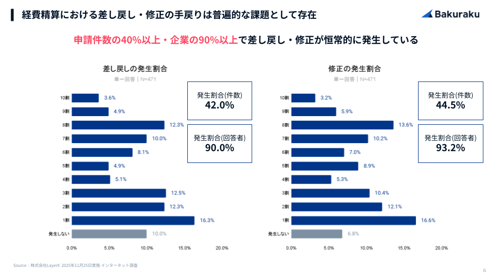 2025年12月19日、LayerXは、経費精算システムの導入・選定に関わった経理・財務担当者471名を対象に、「経費精算の差し戻し・修正」に関する実態調査を実施したと発表した。
