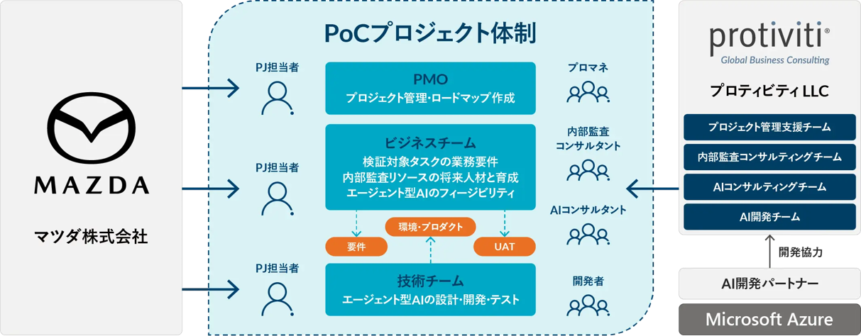 Protivitiの日本法人であるプロティビティは、日本マイクロソフトの技術協力のもと、マツダと共同で、AIエージェントが自律的に業務を遂行するAI時代の内部監査の実現に必要なインフラ、プロセス、リソースを検証・考察する共同実証実験(PoC)を開始した。