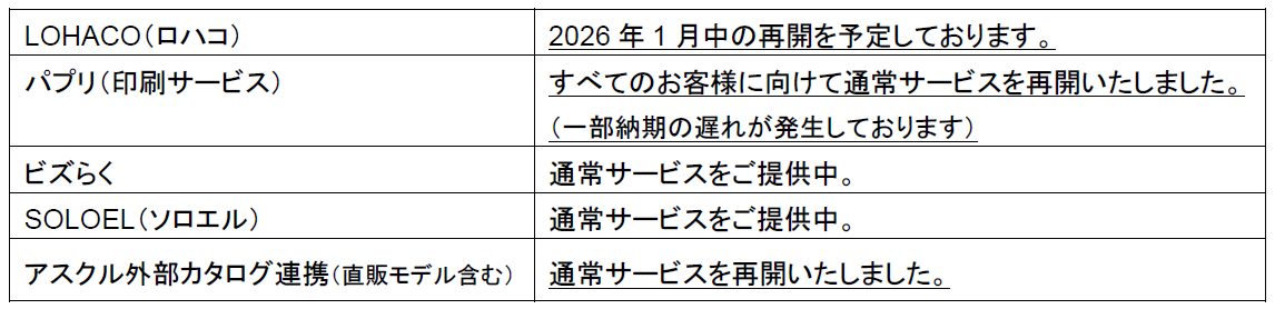 1. ASKULサービスの本格復旧フェーズの進捗