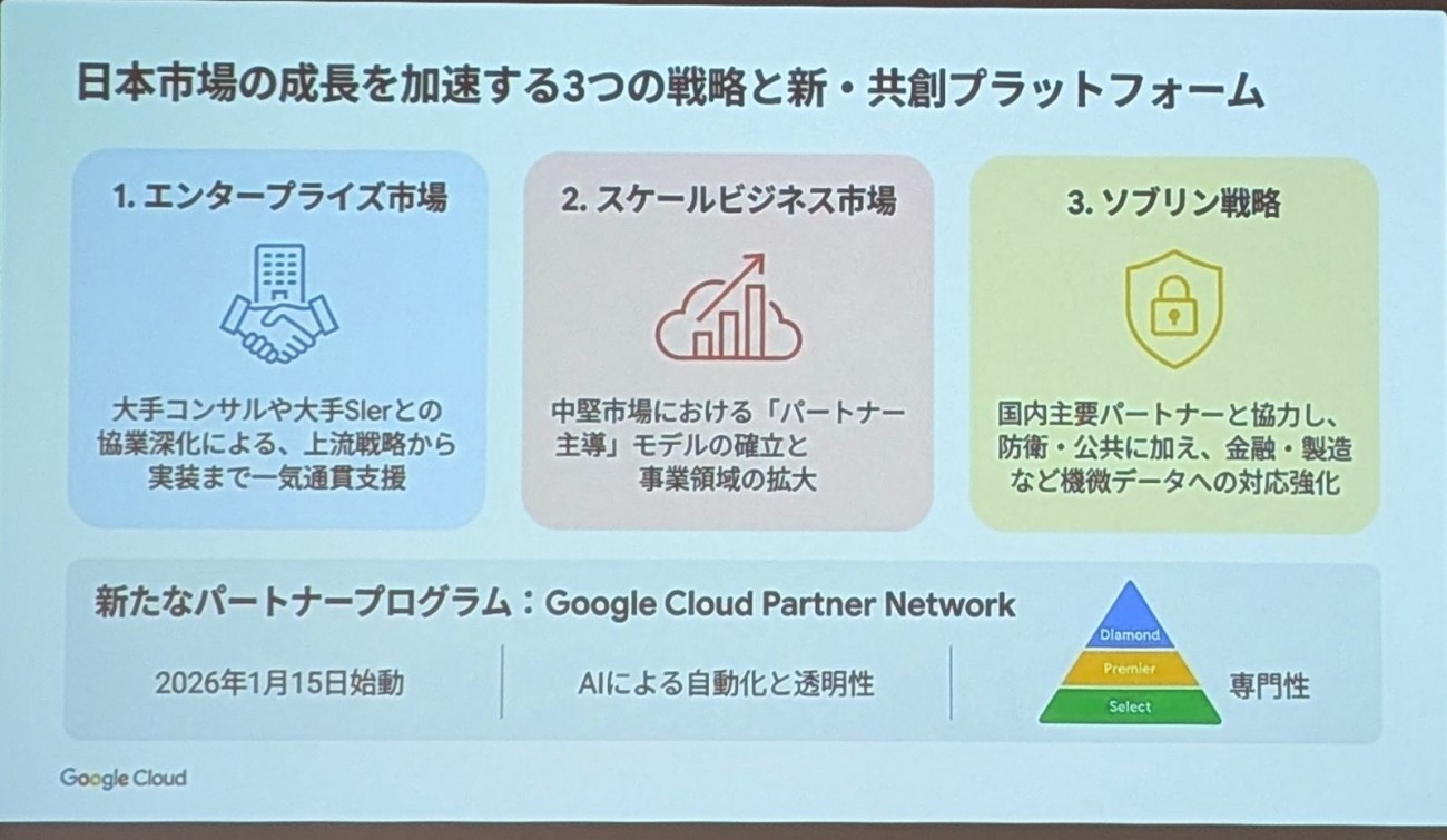 最後にパートナー事業と法人営業を統括する上野由美氏は、1月15日に刷新された新パートナープログラムと、防衛や公共などの機微データを扱う「ソブリン戦略」への対応を説明した。「ビジネスモデルをパートナー主導へシフトすることで、市場のカバレッジを最大化さる」と展望を語り、締めくくった。
