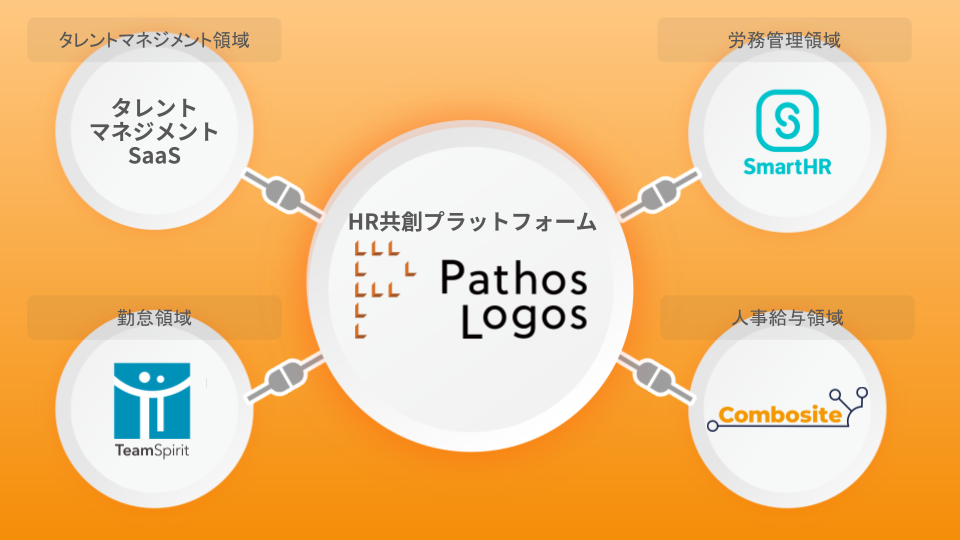 PathosLogosに、Combosite人事給与、SmartHR、TeamSpiritと既存利用のタレントマネジメントSaaSを連携することで、人事業務と人材活用の高度化を目指すとしている。
