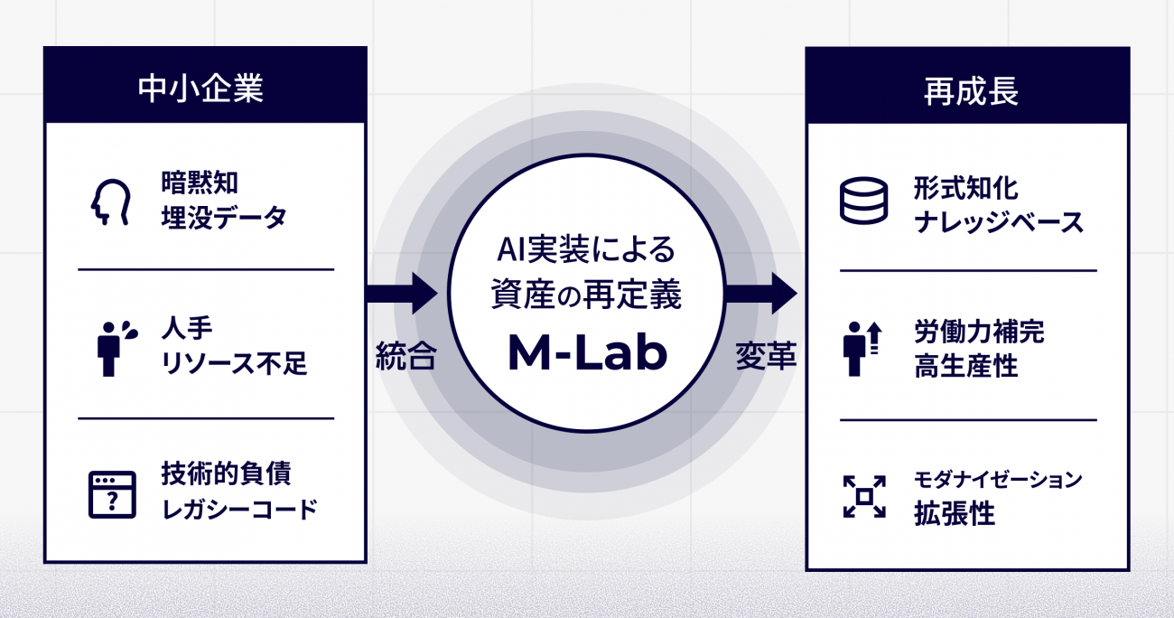 国内では経営者の高齢化により、中小企業の約52.7%が後継者不在という課題を抱えている。特にソフトウェア分野では、技術やノウハウの属人化、新技術への対応の遅れにより、事業継続が困難になるケースが増えているという。マイクロニティはM-Lab設立によって、蓄積されたソフトウェア資産をAIで解析し現代のシステムへ最適化するなど、資産継承の根本的課題解決を目指す。