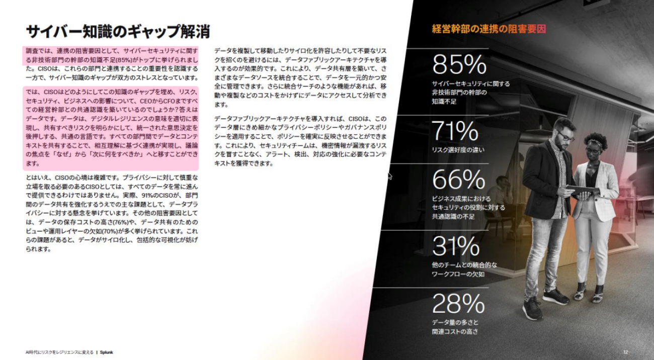 ただし、相変わらずサイバーセキュリティに関する知識・理解のギャップによって経営層や他部門との連携に苦しんでいるCISOが多いと矢崎氏。単なる知識不足だけでなく、立場や役割ごとに異なるリスク選好度、ビジネス成果におけるセキュリティの役割に対する認識の齟齬、他部門との統合的なワークフローの欠如などに起因する問題だという。その解消策としては、「データ」がカギを握ると同氏。誰が見てもわかりやすい数字やデータ、コンテキストは組織の“共通言語”となるからだ。
