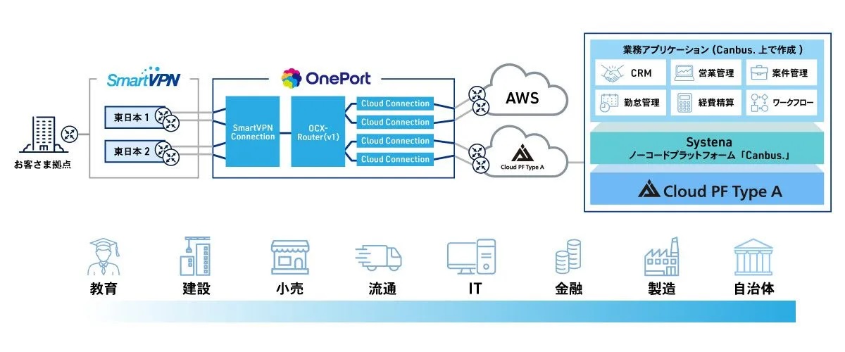 すでにシステナがCloud PF Type Aを採用し、ノーコードプラットフォーム「Canbus.」の運営基盤として稼働させている。ソブリン性を備えた環境上で業務アプリを提供できることで、金融業の承認フロー、製造業のサプライチェーン管理、自治体の住民情報管理など政府が定める「重要インフラ15分野」向けへの展開が可能になるとしている。