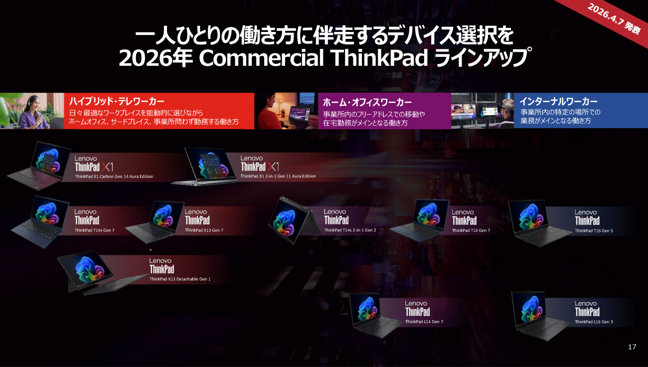 レノボ・ジャパンは4月7日、2026年の「ThinkPad」最新モデルとして10のラインアップを発表した。