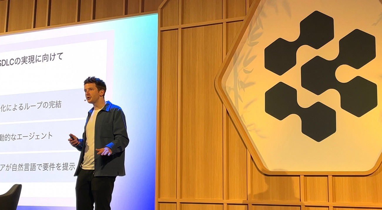 キーノートには、共同創業者のラッセル・カプラン氏が来日登壇した。「世界中でソフトウェアエンジニアリング人材が不足しており、日本は特に深刻だ」とカプラン氏。ソフトウェアの需要が、開発キャパシティを大きく上回っていると指摘した。