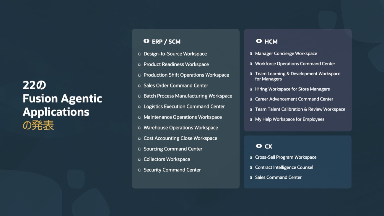 オラクル、「Fusion Agentic Applications」を発表──AIエージェントの決定性と成果主義を重視
