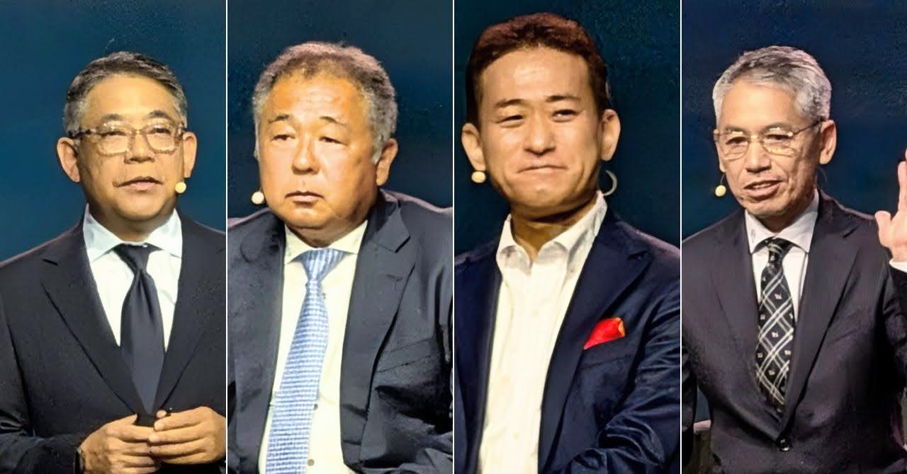 (左より)日本オラクル 取締役 執行役 社長 三澤智光氏/ソフトバンク 常務執行役員 丹波廣寅氏/JTB 取締役 常務執行役員(CFO)沖本哲氏/デンソー ITデジタル本部長 城所幸弘氏