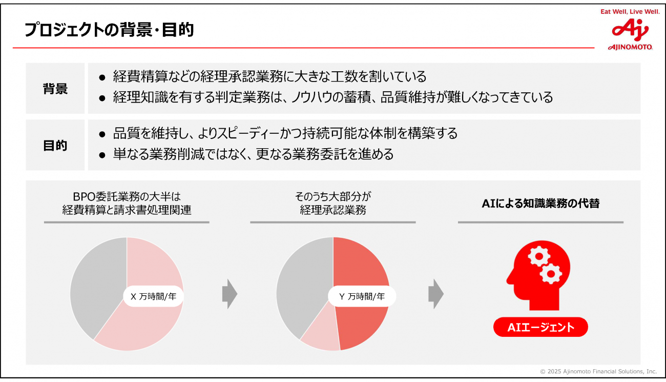 木田氏は、AI導入によるリソースの変化について「BPOの工数を削減して終わりではなく、空いたリソースに別の業務を委託することで、味の素FSの社員は、より事業に貢献する領域、たとえば管理会計や業務コンサルティングといった付加価値の高い業務に注力していくことができる」とコメント。