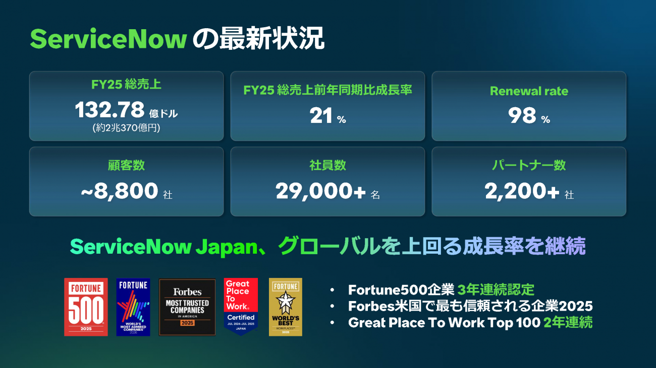 ServiceNow Japanは2026年4月22日、東京ミッドタウン日比谷の新オフィスにおいて、2026年の事業戦略に関する記者説明会を開催した。同社は「AIエージェント時代の企業OS」を掲げ、AIを単なるツールから自律的に業務を担う「AI社員」へと進化させる戦略を提示した。