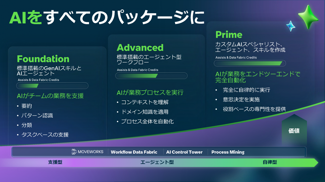 最後に、新たなライセンス体系についても発表があった。すべての階層でAI機能を標準搭載し、ユーザー単位の予測可能性と、利用量に応じた柔軟性を組み合わせたモデルを提供するという。原氏は「一番ベーシックなモデルからAIを利用できるようにし、裾野を広げていく。AIを新たな経営資本として活用し、人間がよりクリエイティブな業務に集中できる社会を実現したい」と締めくくった。